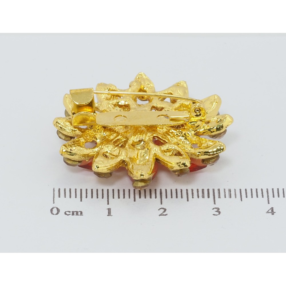 Брошь Цветок с оранжевыми стразами фото №2