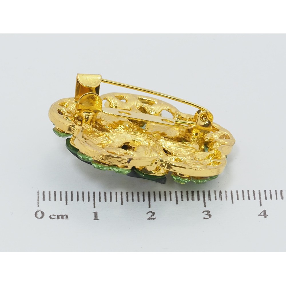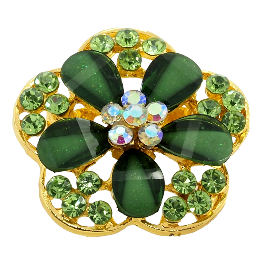 Брошь Цветок с зелеными стразами