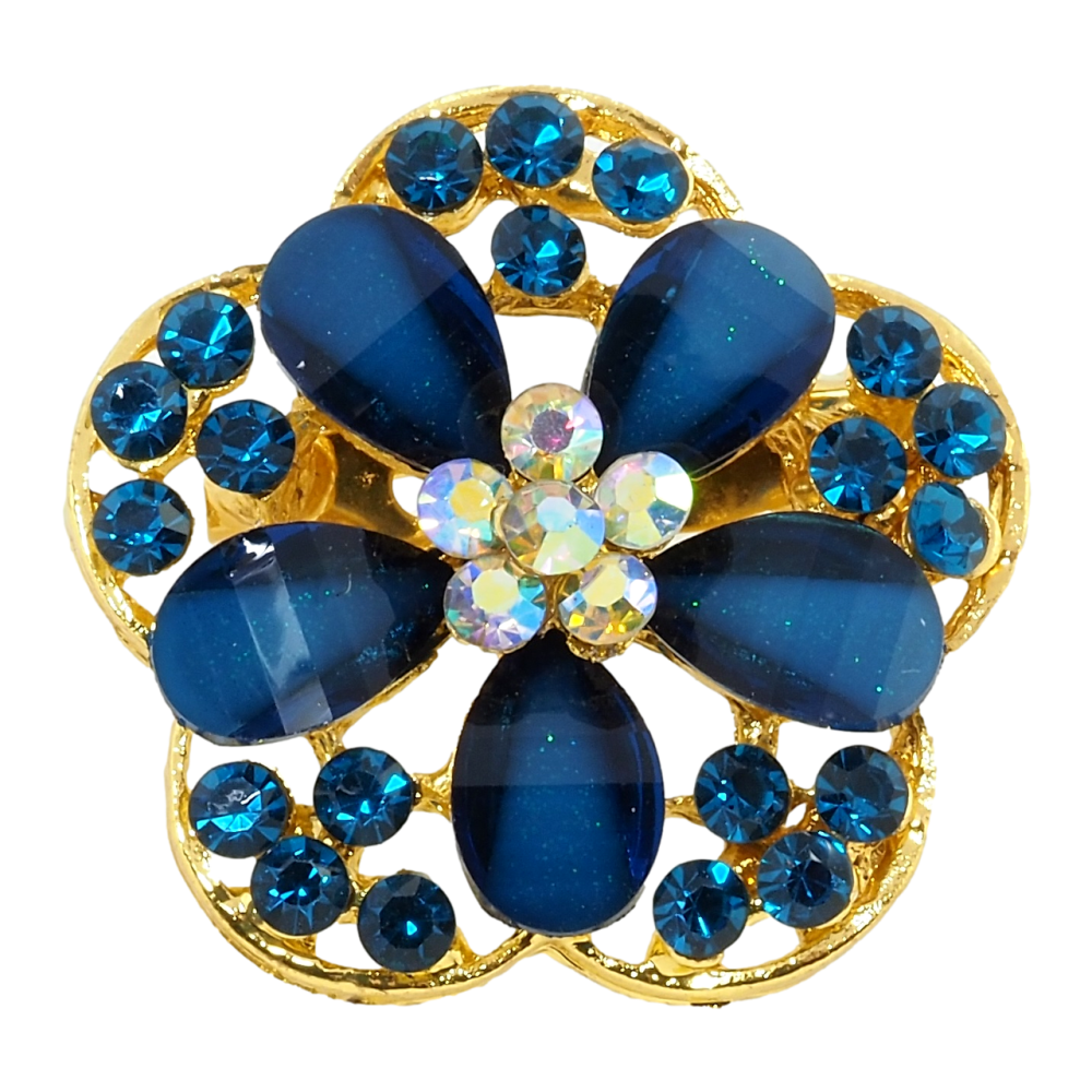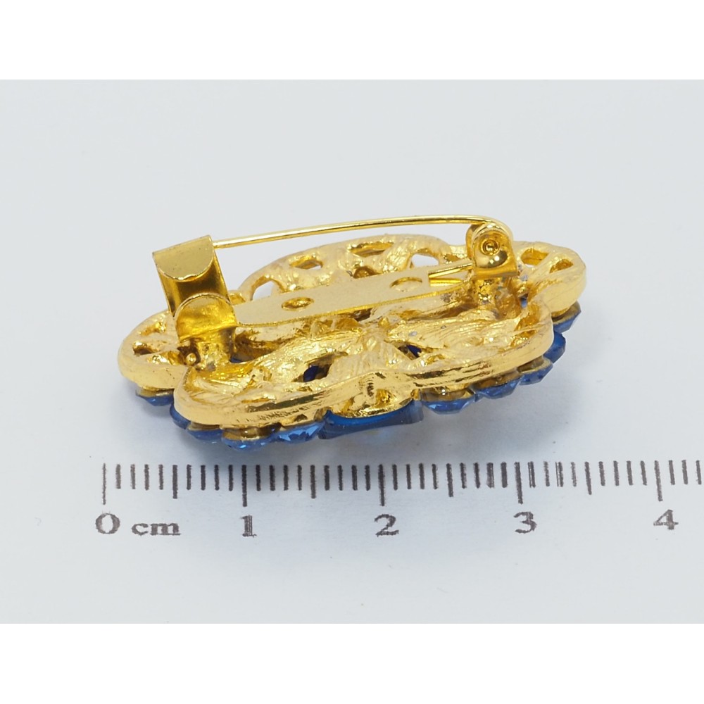 Брошь Цветок с синими стразами