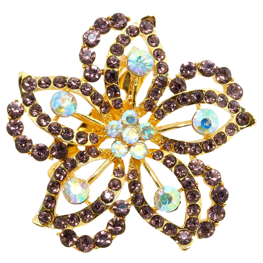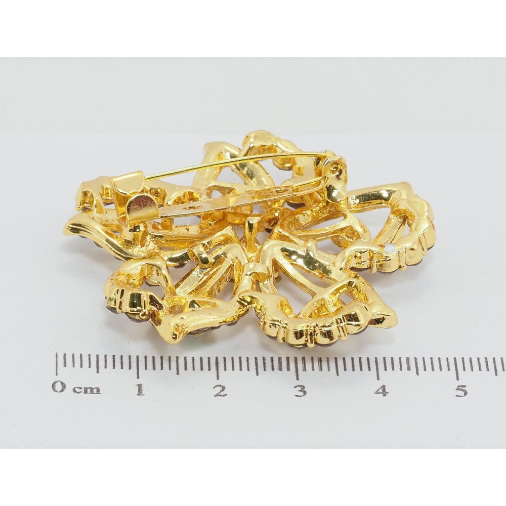 Брошь Цветок с бордовыми стразами