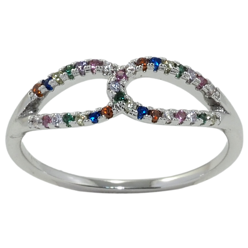 Кольцо Xuping Родий Петельки с разноцветным цирконием фото №1