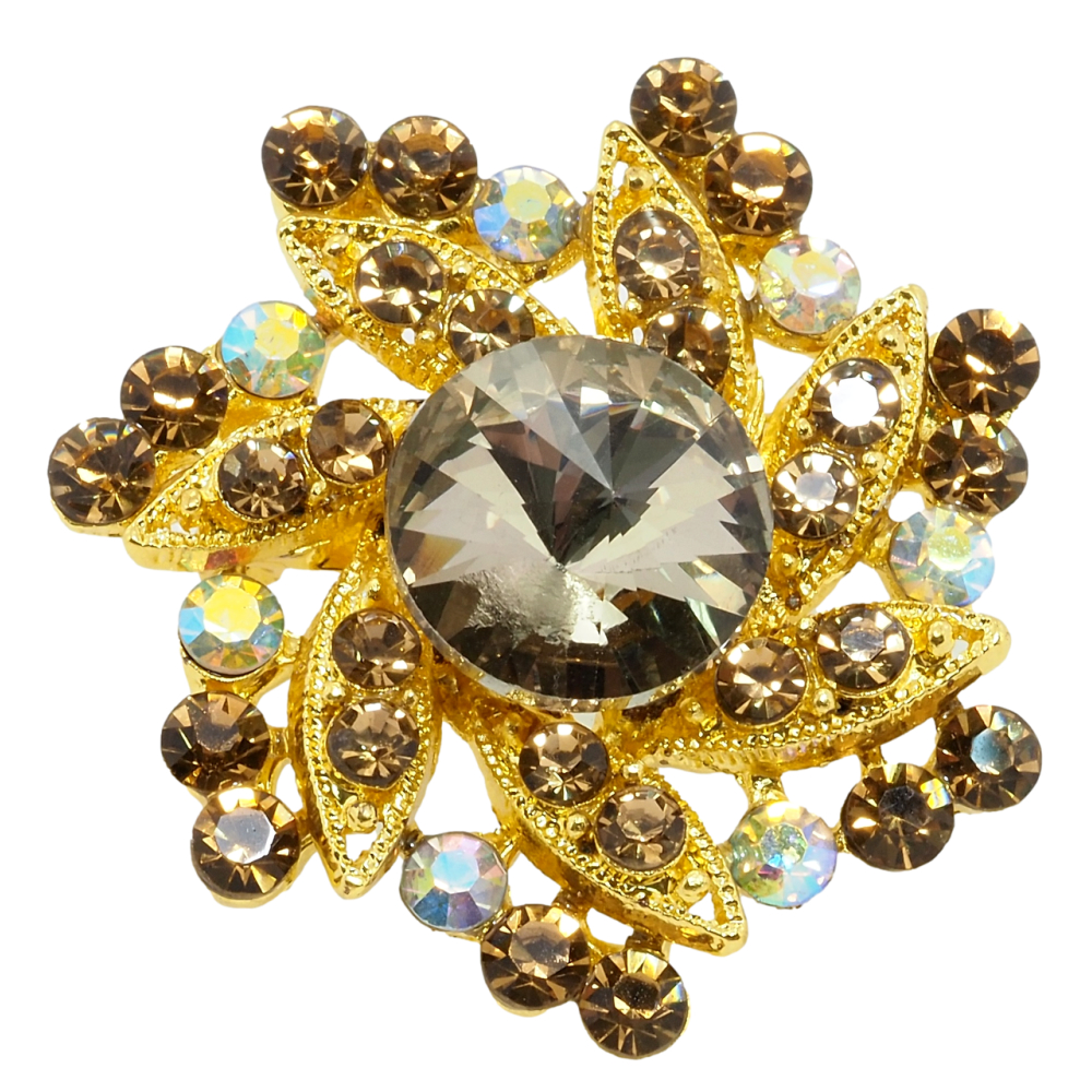 Брошь Цветок с коричневыми стразами