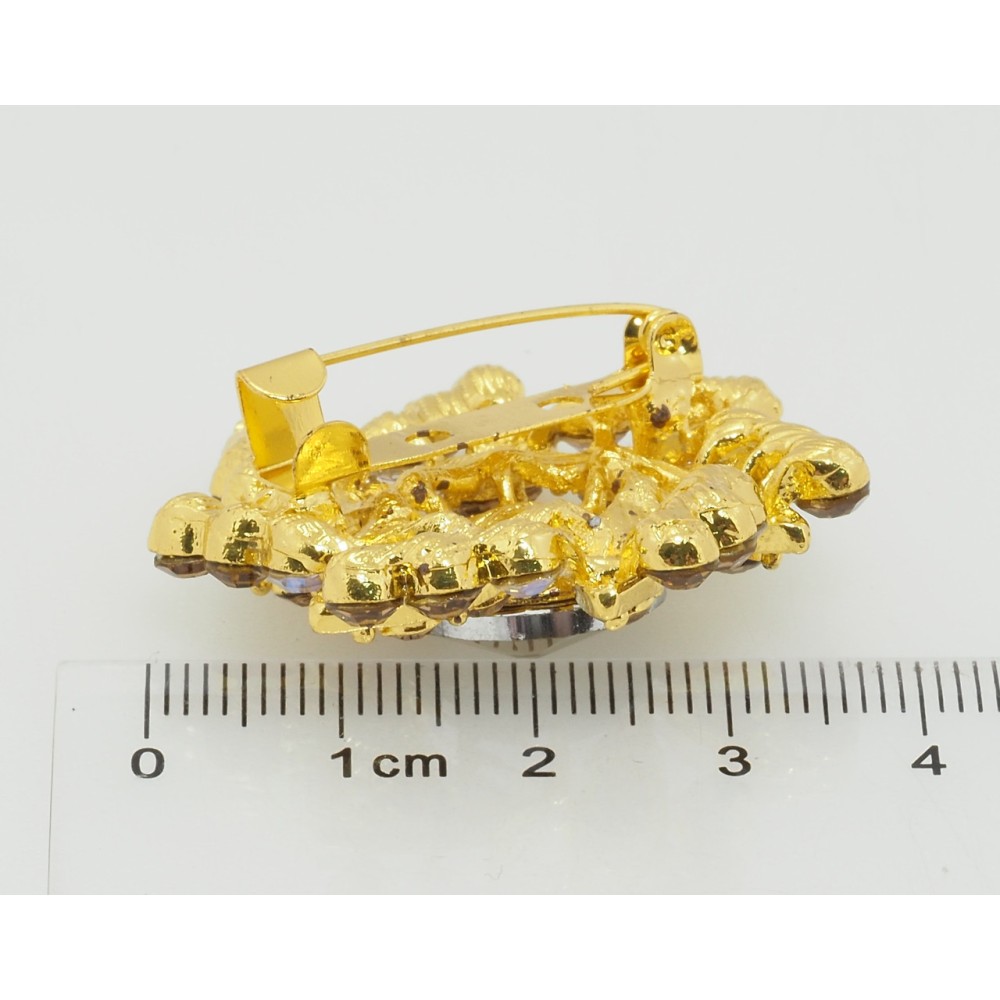 Брошь Цветок с коричневыми стразами фото №2