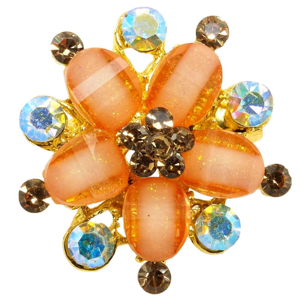 Брошь Цветок с оранжевыми стразами