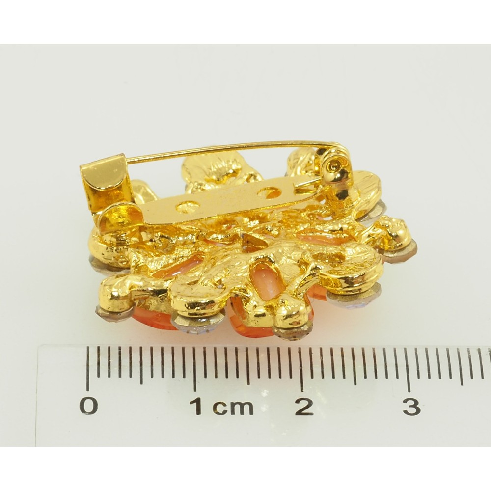 Брошь Цветок с оранжевыми стразами фото №2