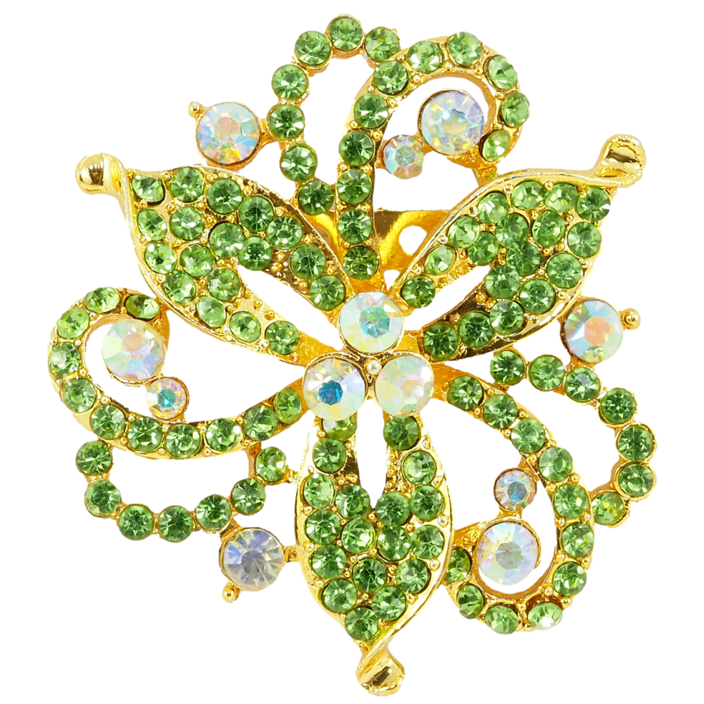 Брошь Декоративный цветок с зелеными стразами