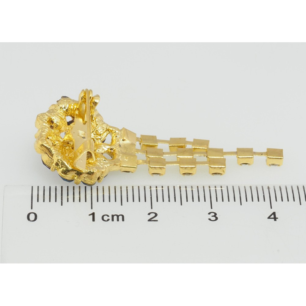 Брошь Цветок с синими стразами
