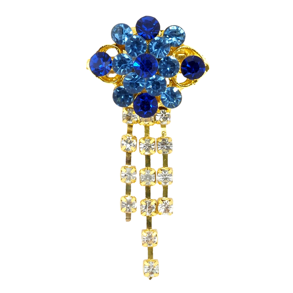 Брошь Цветок с синими стразами