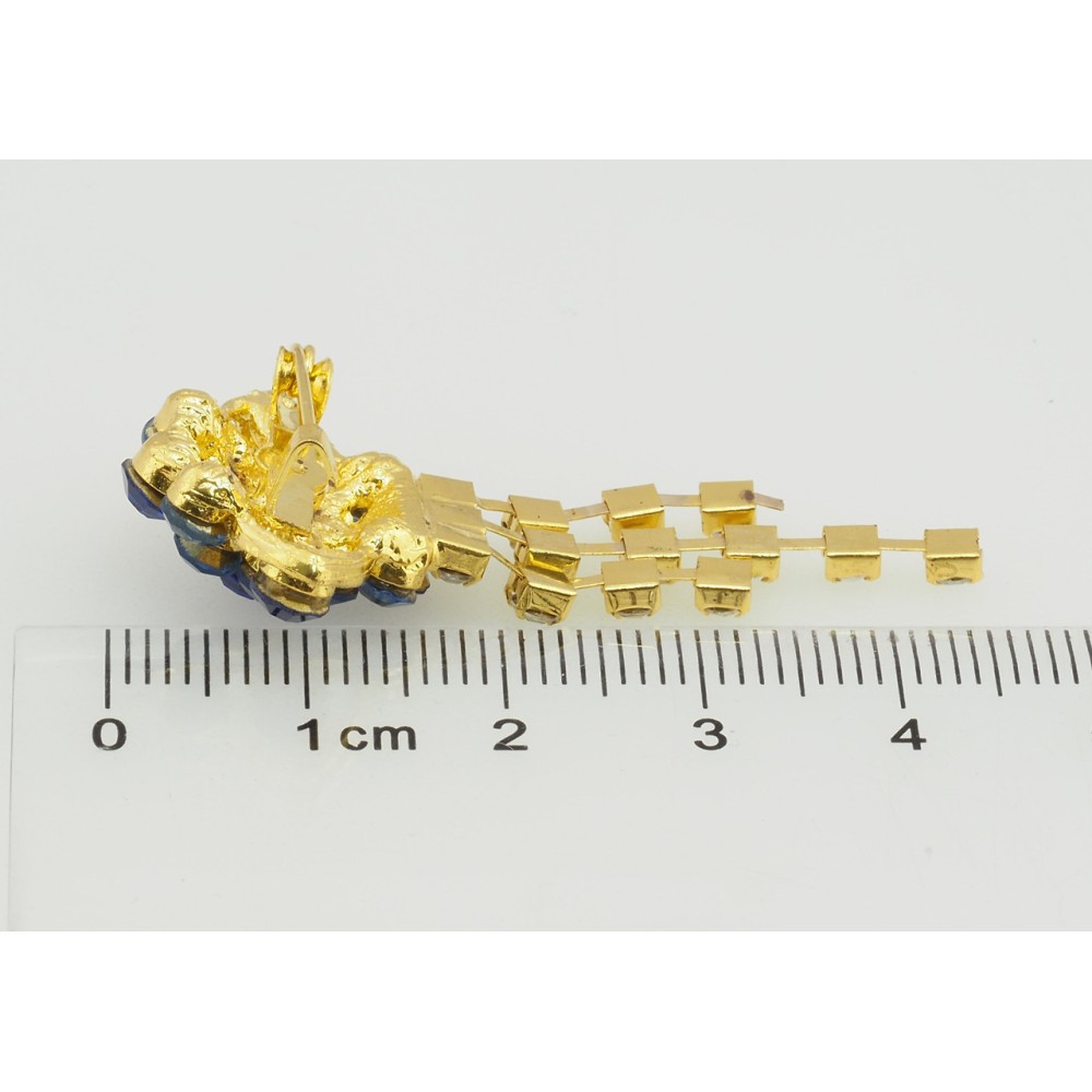 Брошь Цветок с синими стразами фото №2