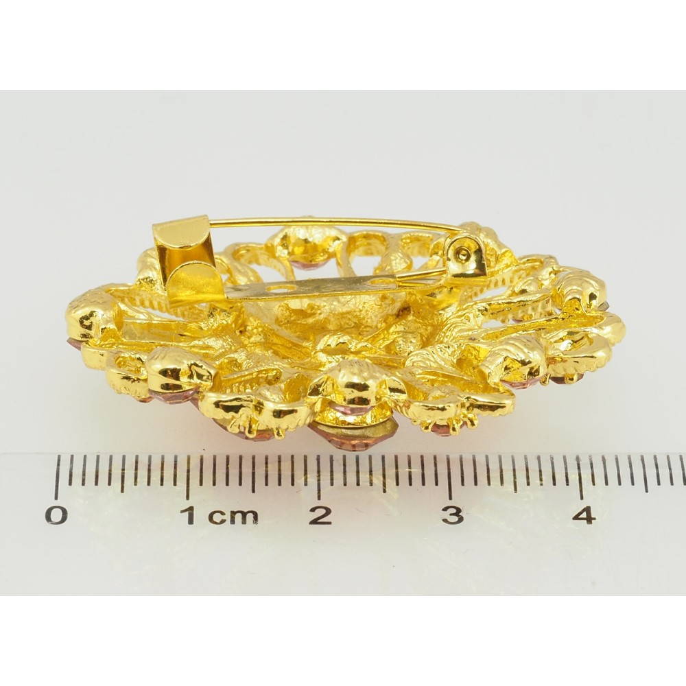 Брошь Цветок с розовыми стразами фото №2