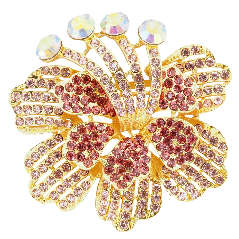 Брошь Цветок с розовыми стразами