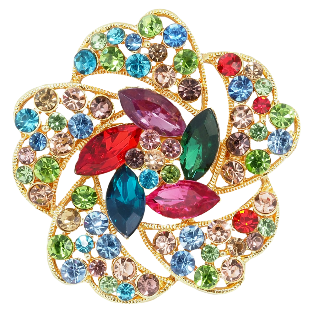 Брошь Цветок с разноцветными стразами