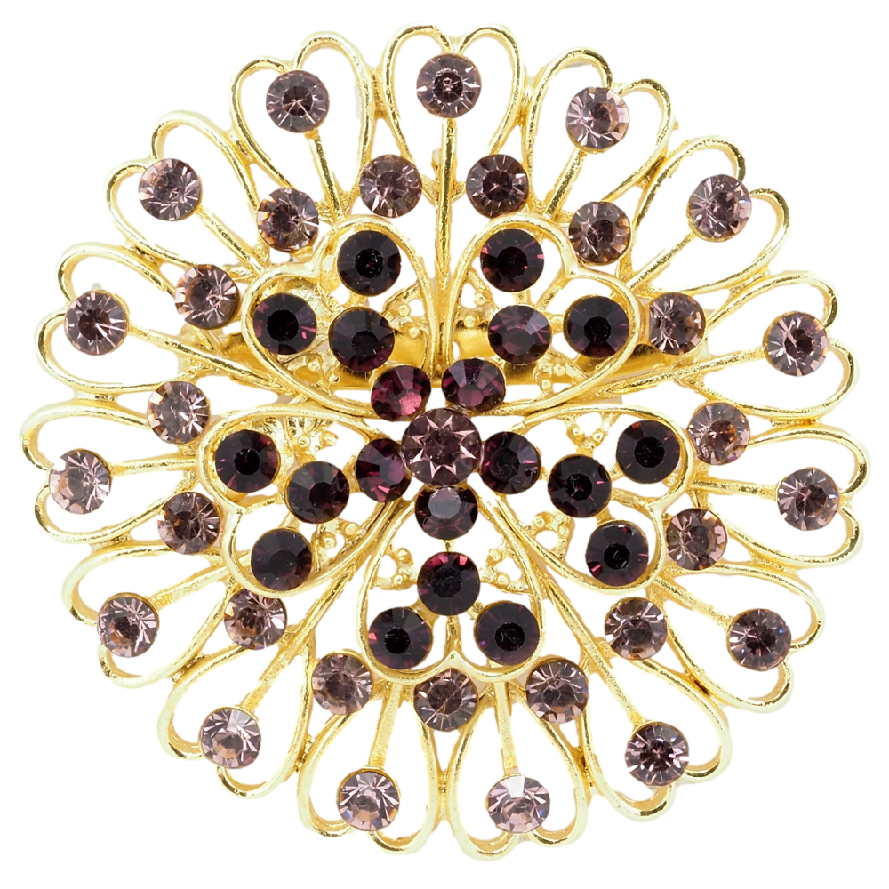 Брошь Цветок с бордовыми стразами