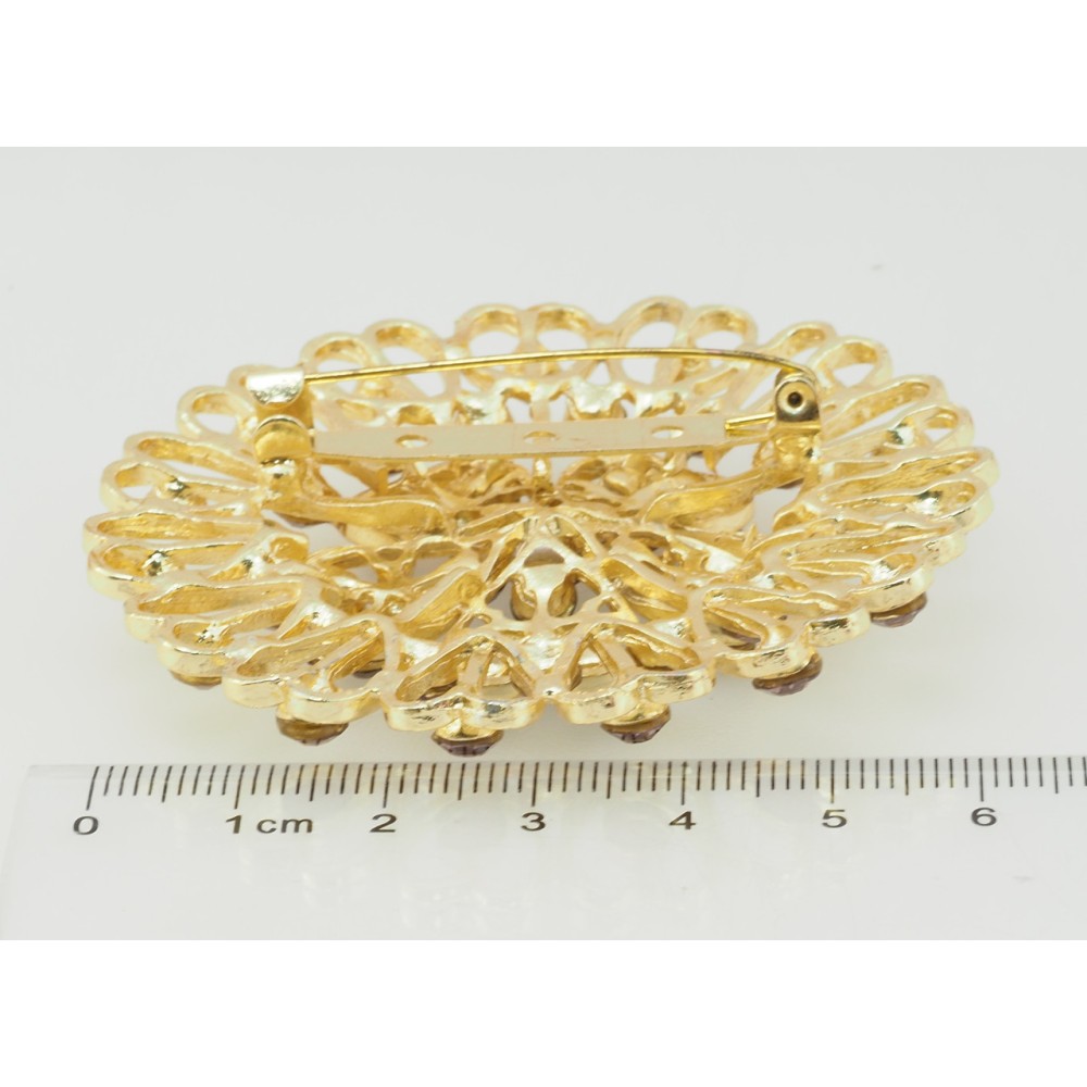 Брошь Цветок с бордовыми стразами фото №2