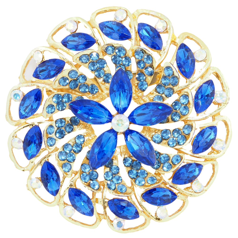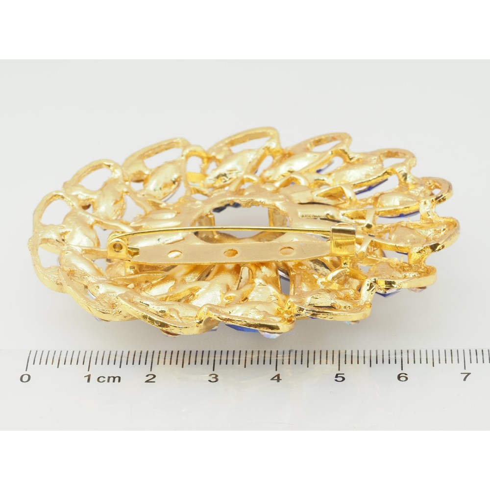 Брошь Цветок с синими стразами