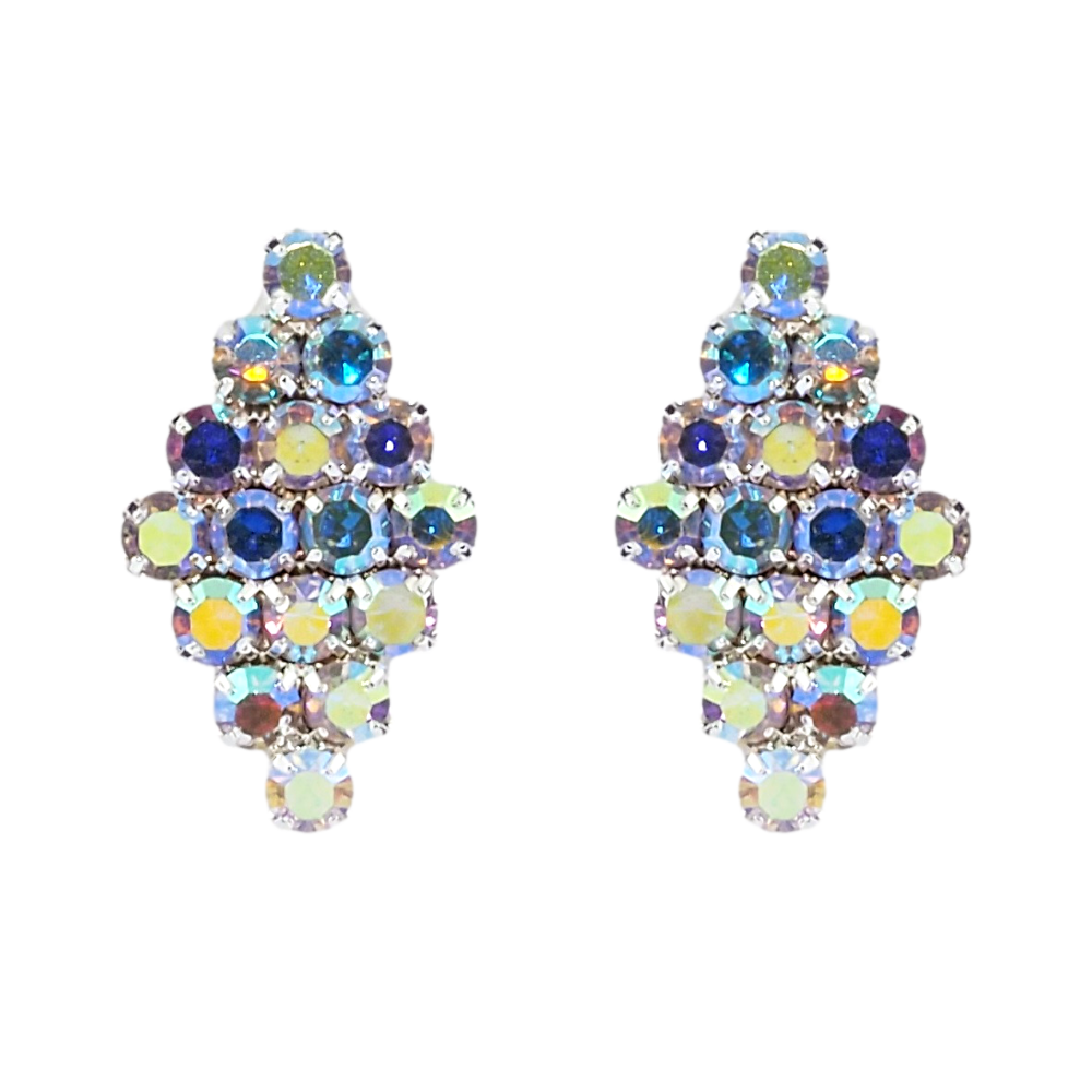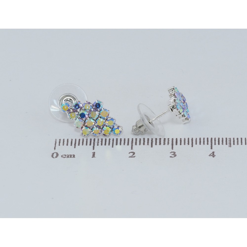 Серьги пусеты Ромбы с радужными стразами