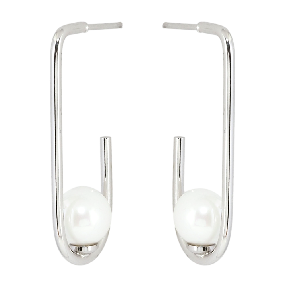 Серьги Xuping Родий пусеты Петельки с жемчужинами фото №1