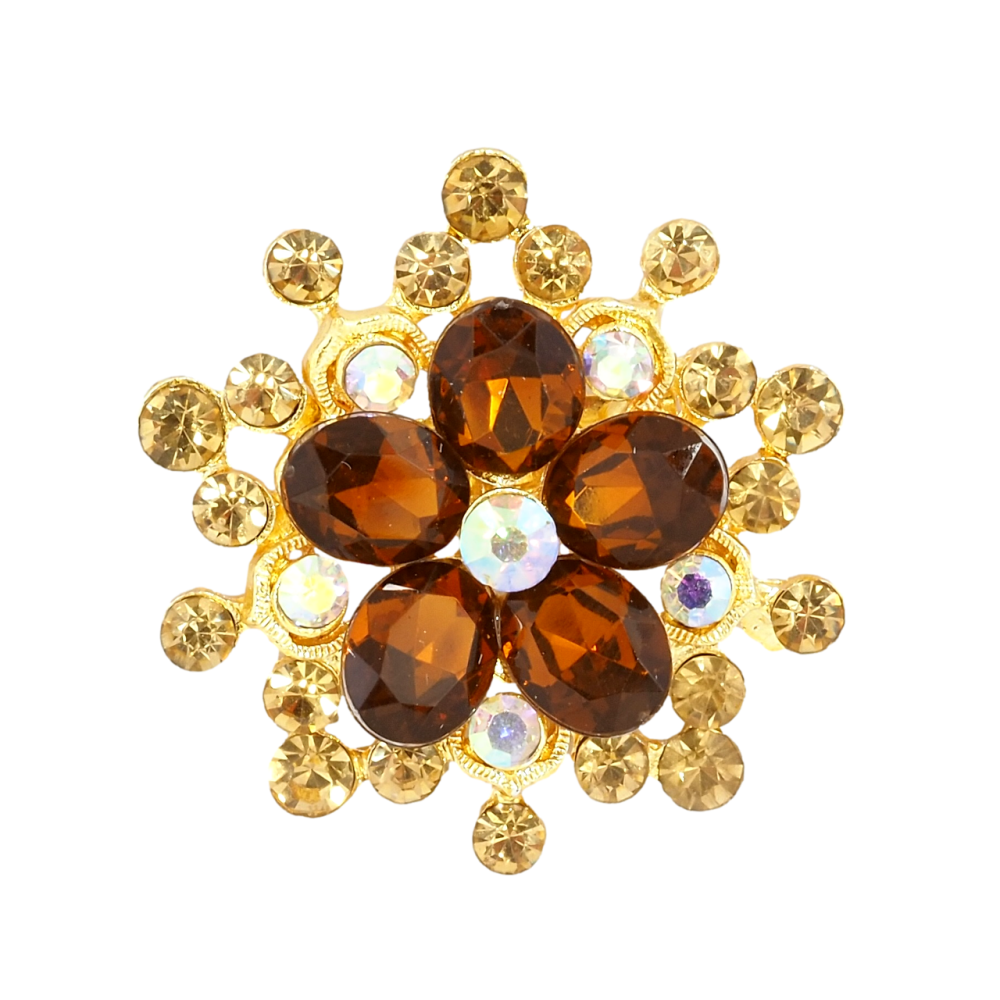 Брошь Цветок с коричневыми стразами