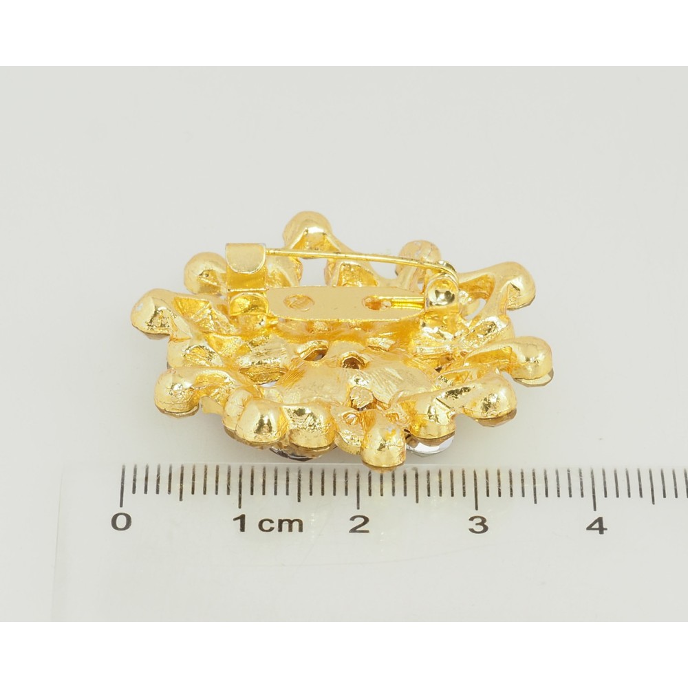 Брошь Цветок с коричневыми стразами фото №2