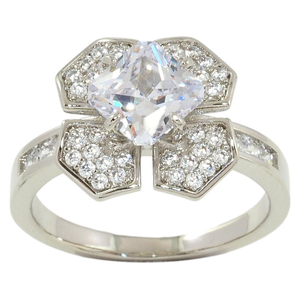 Кольцо Xuping Родий Цветок с цирконием фото №1