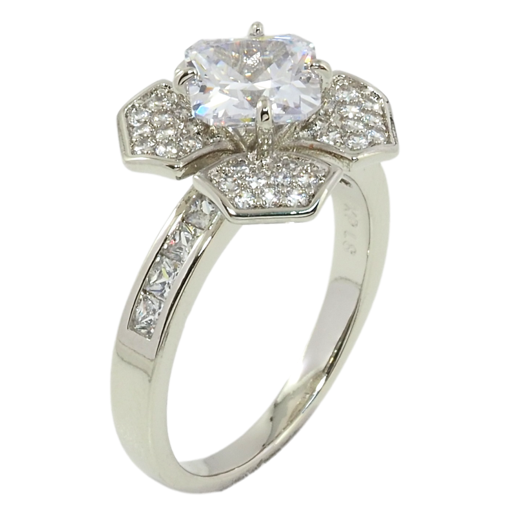 Кольцо Xuping Родий Цветок с цирконием фото №2