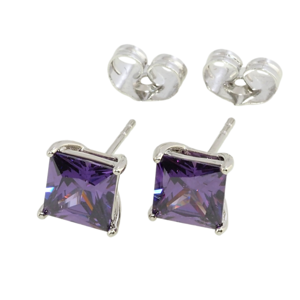 Серьги Xuping Родий пусеты Сиреневые фианиты 7х7мм фото №1