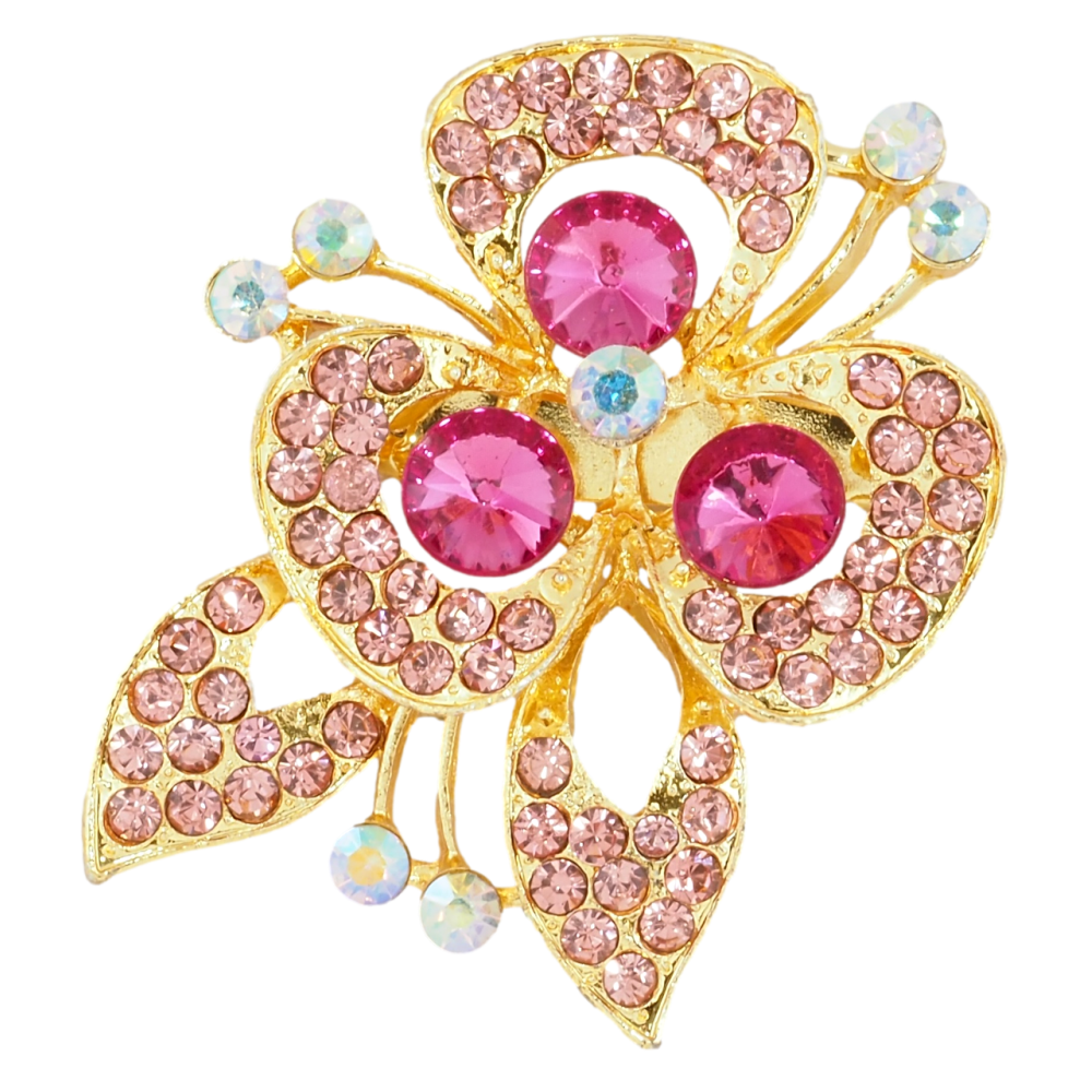 Брошь Цветок с розовыми стразами