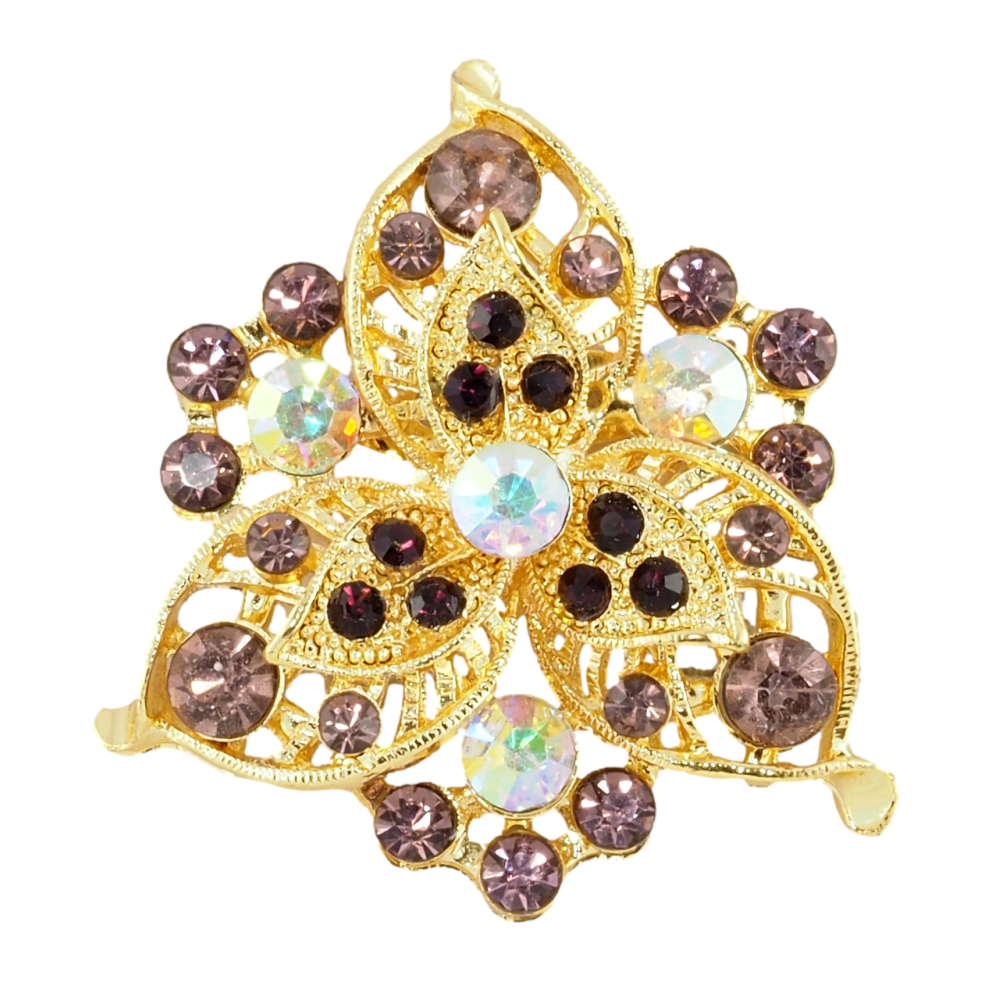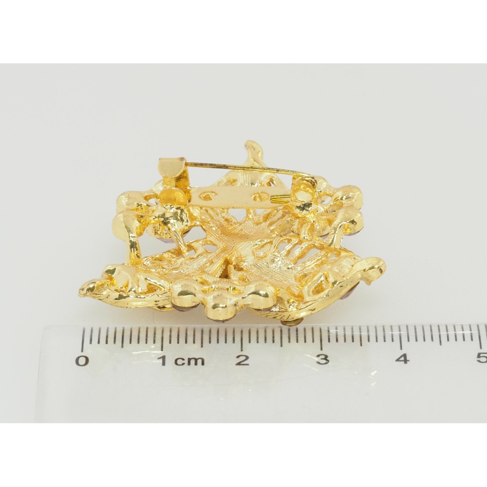 Брошь Цветок с бордовыми стразами