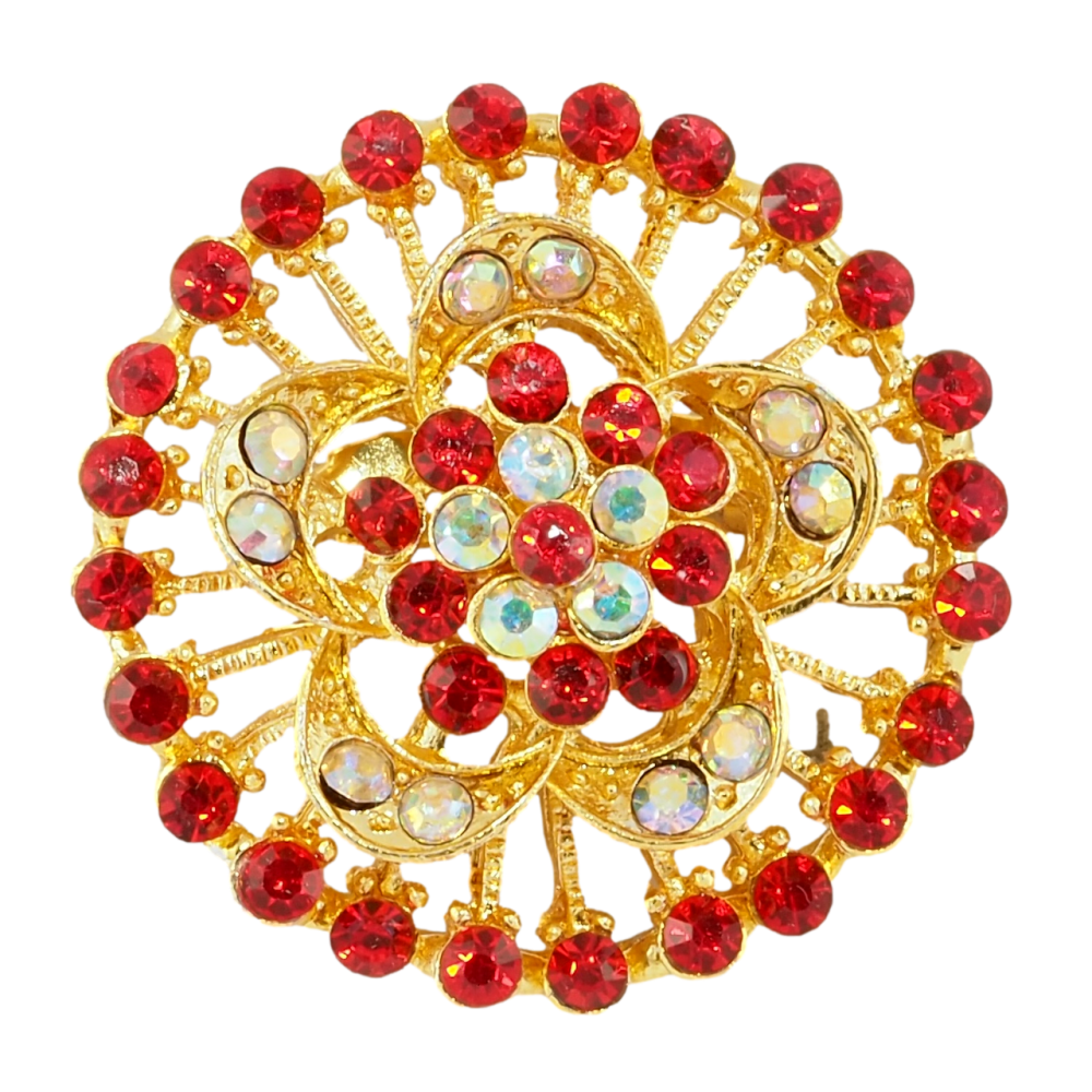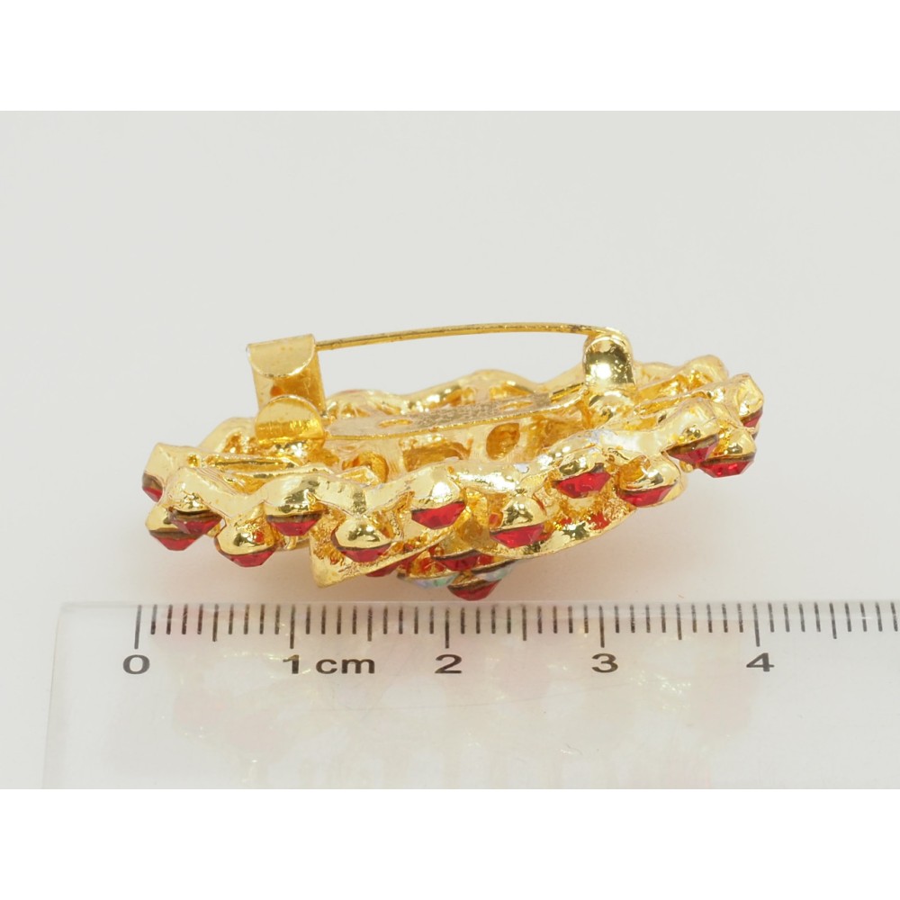 Брошь Цветок с красными стразами