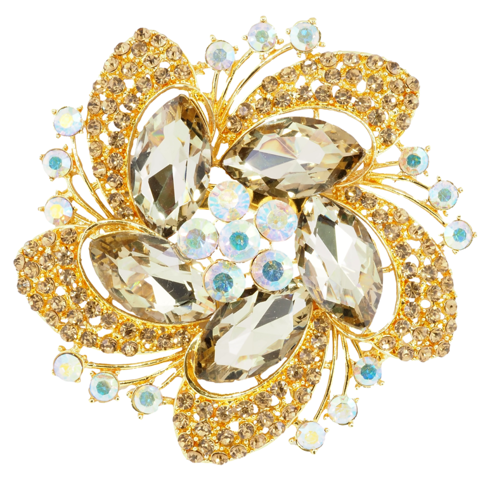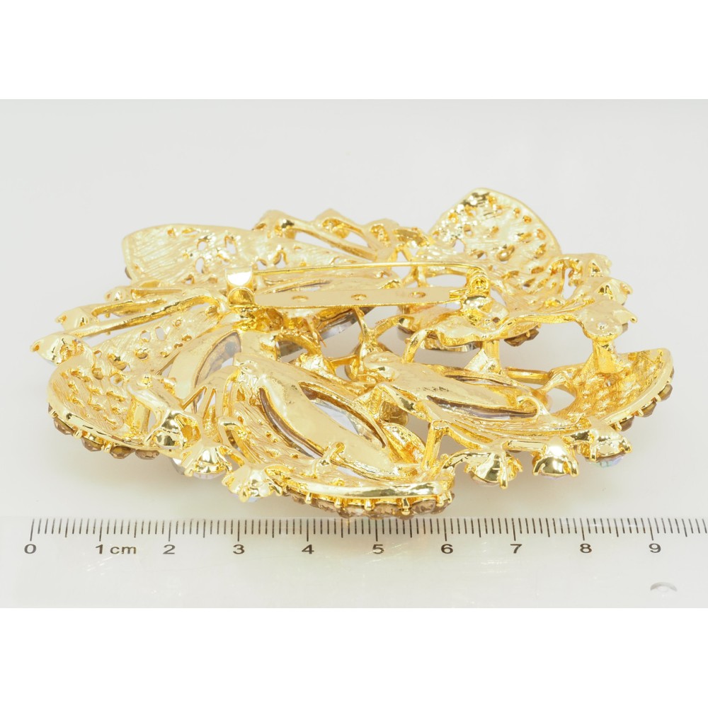 Брошь Большой цветок с золотистыми стразами