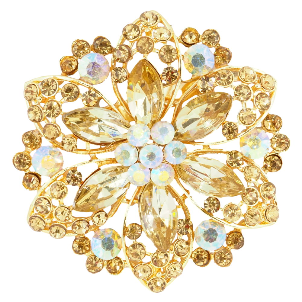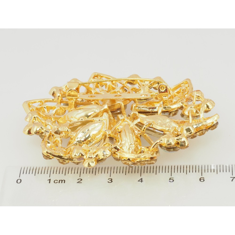 Брошь Цветок с золотистыми стразами