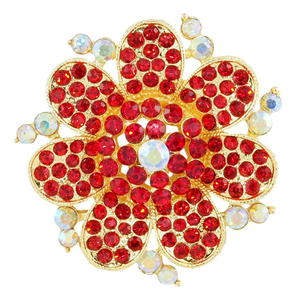 Брошь Цветок с красными стразами