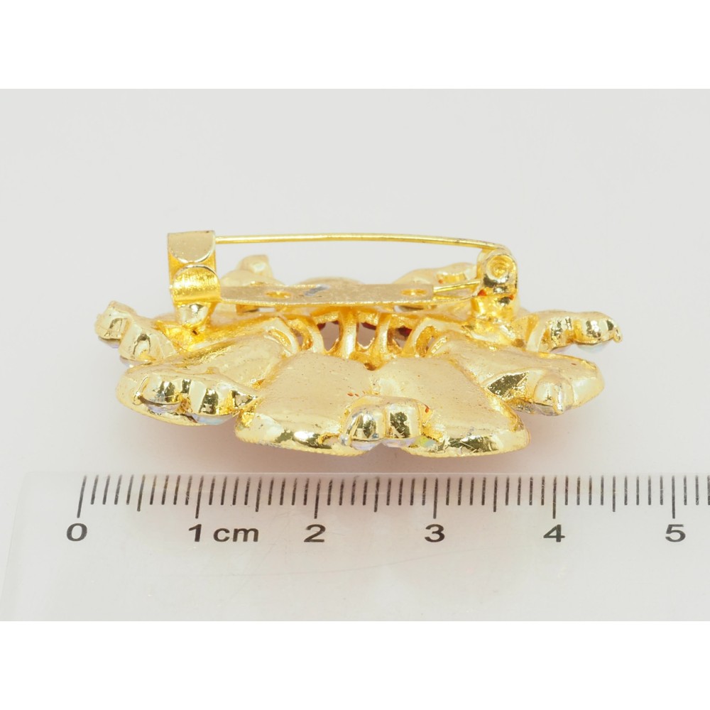 Брошь Цветок с красными стразами фото №2