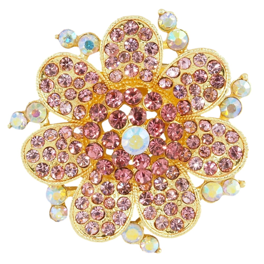 Брошь Цветок с розовыми стразами