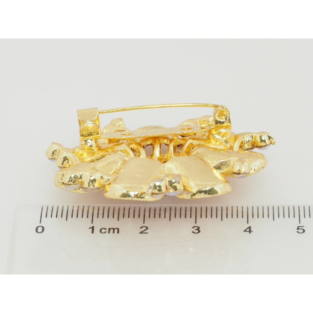 Брошь Цветок с розовыми стразами фото №2