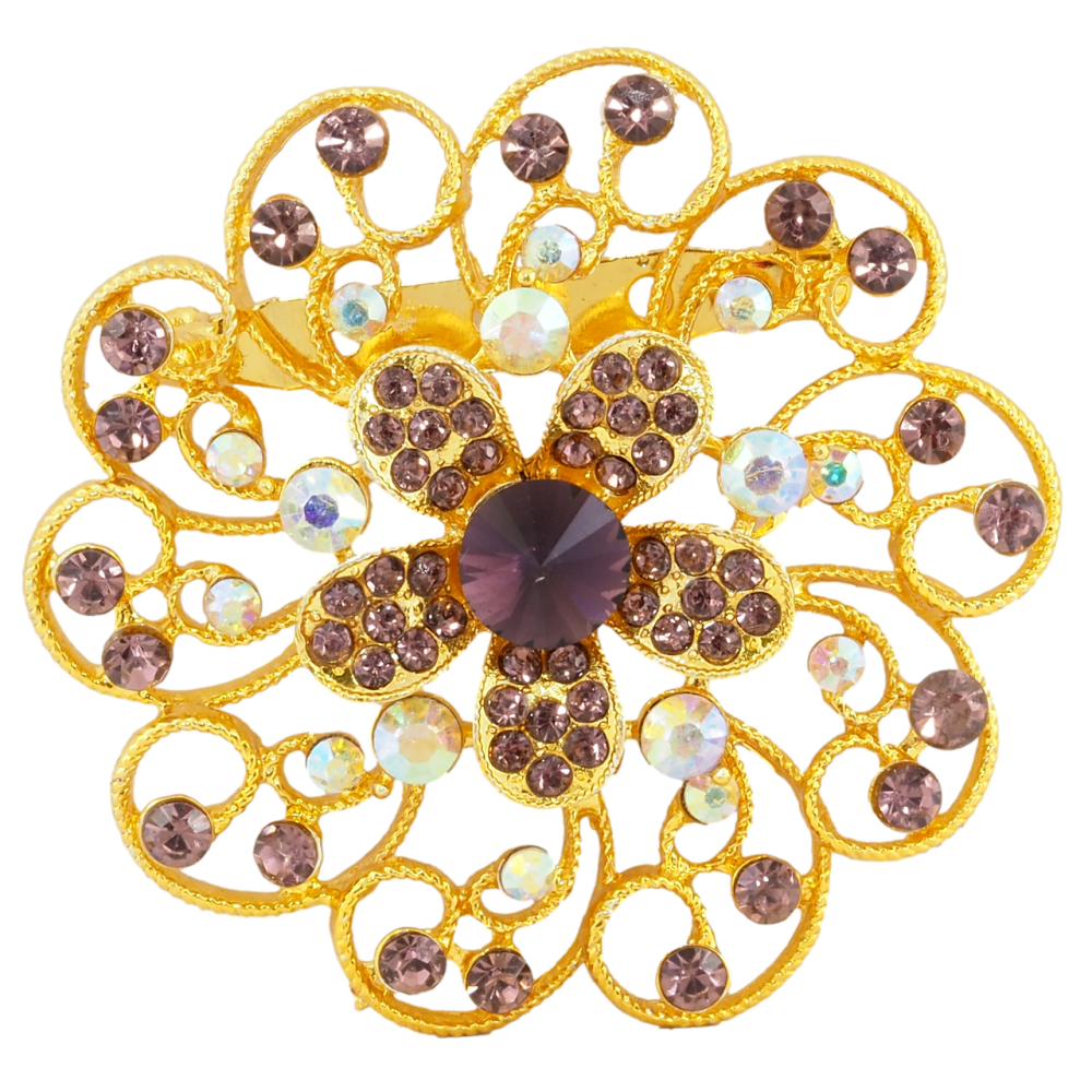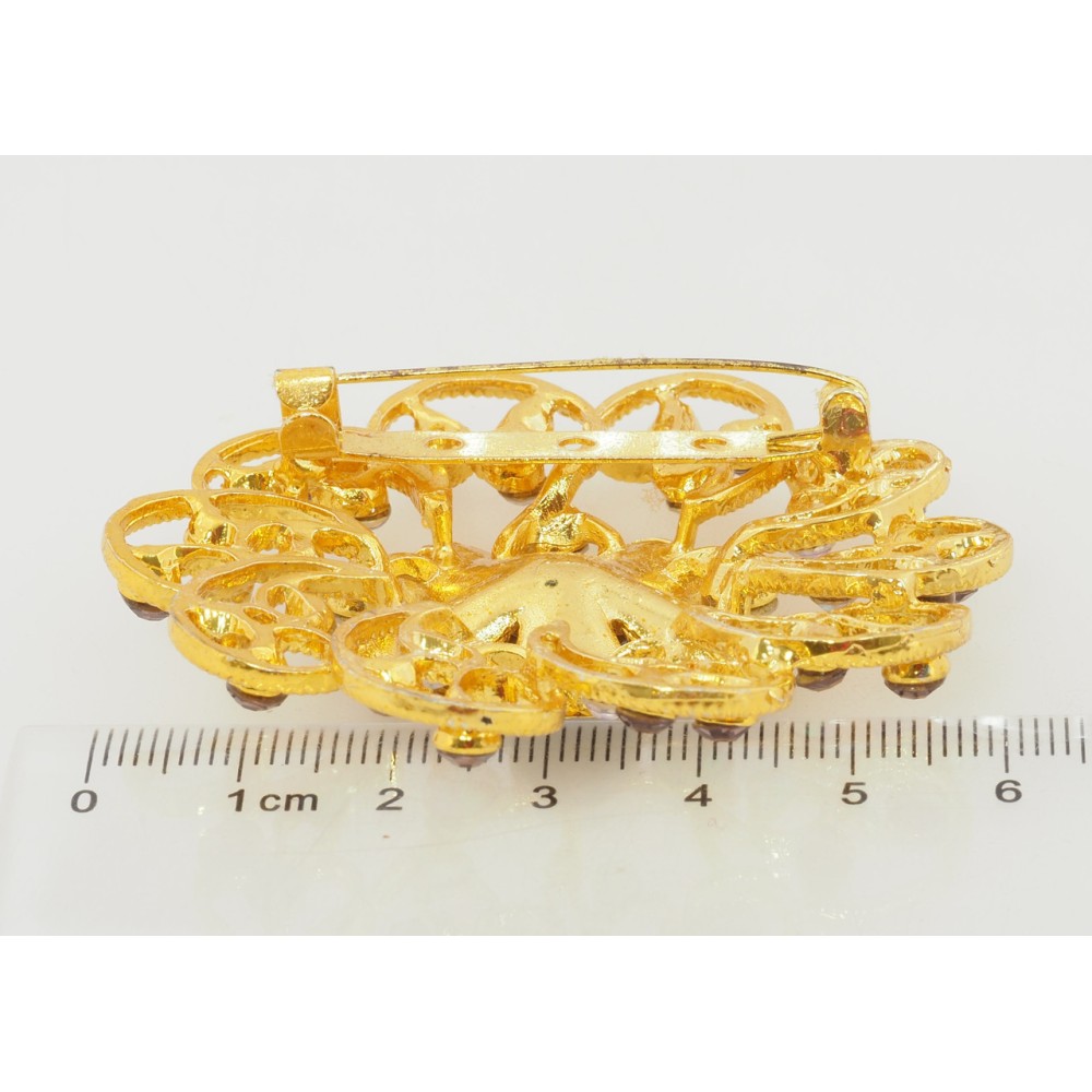 Брошь Цветок с бордовыми стразами