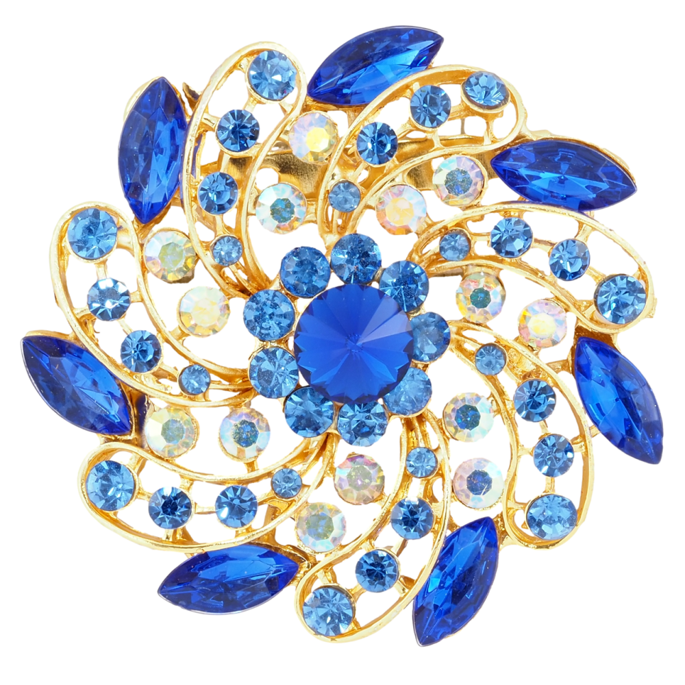 Брошь Цветок с синими стразами