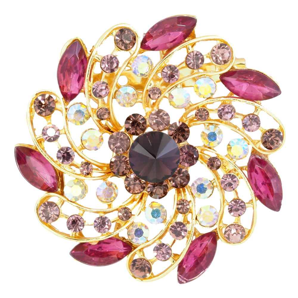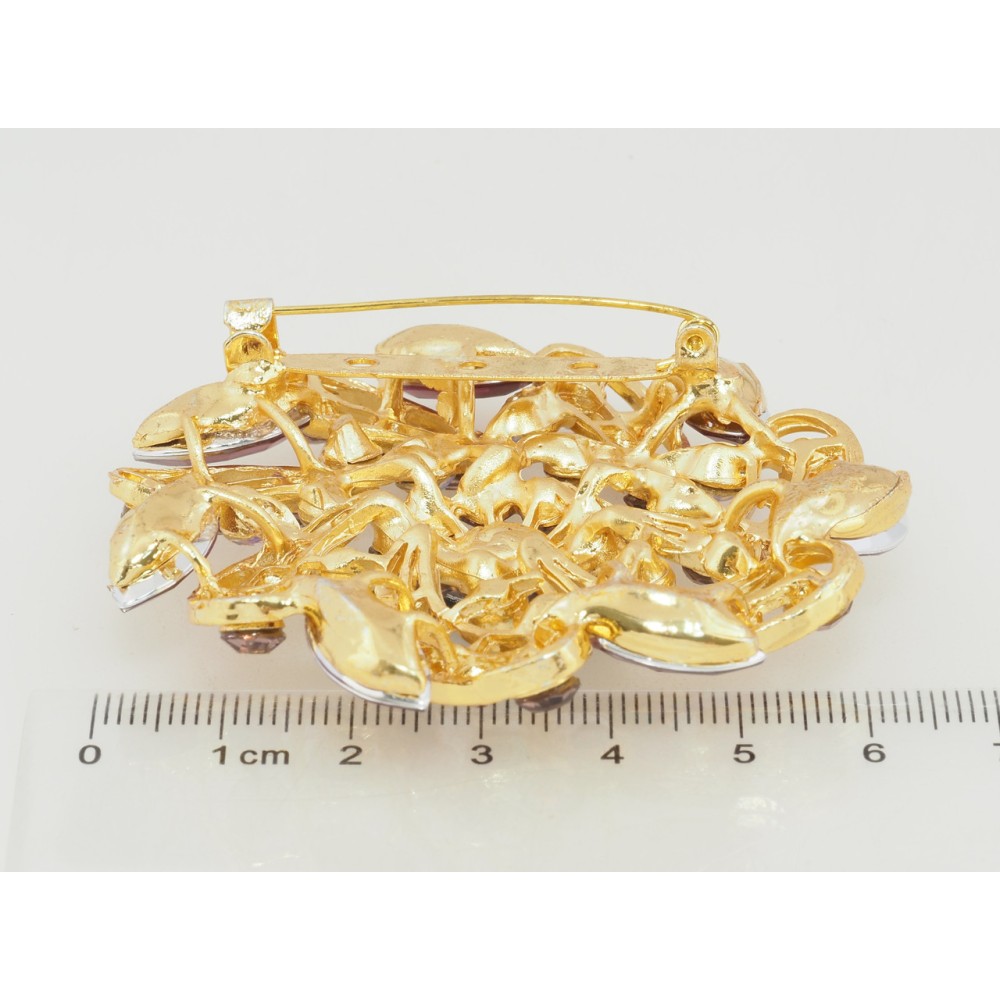 Брошь Цветок с бордовыми стразами