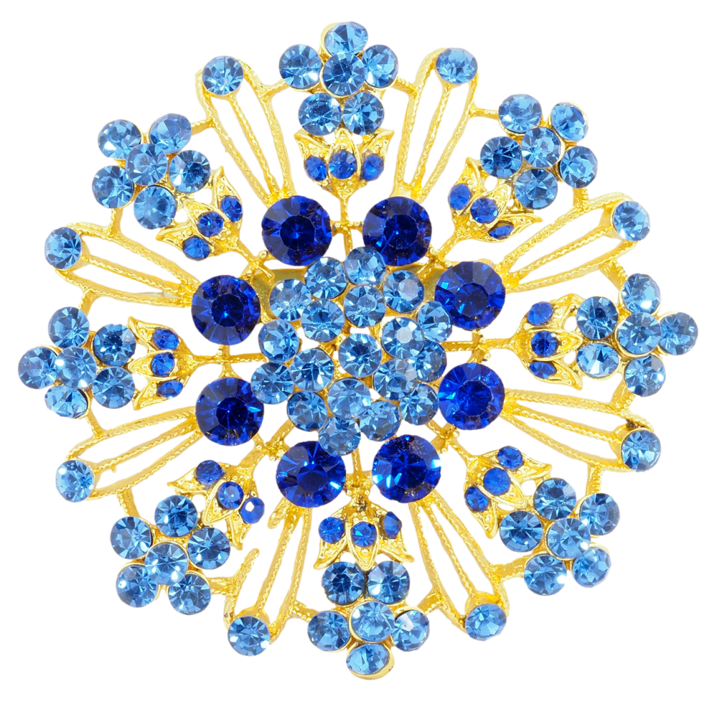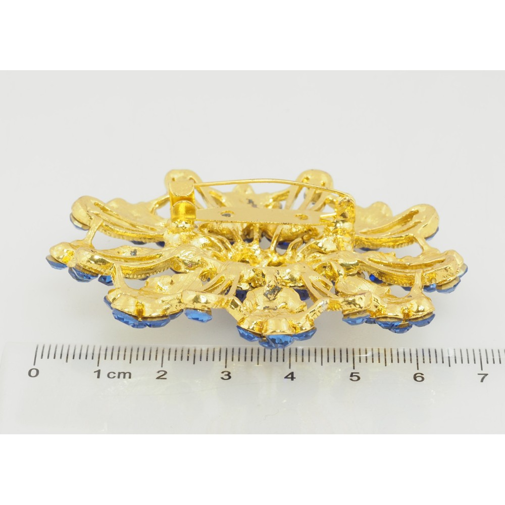 Брошь Цветок с синими стразами