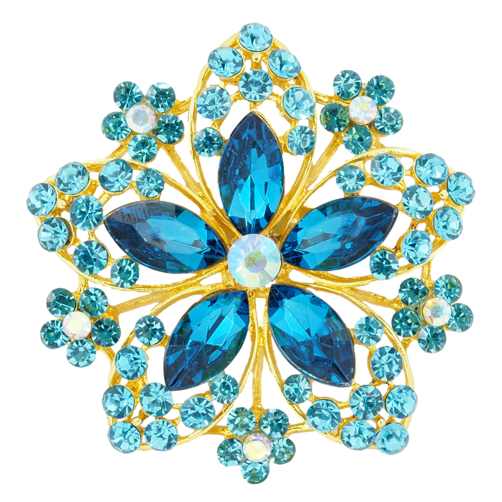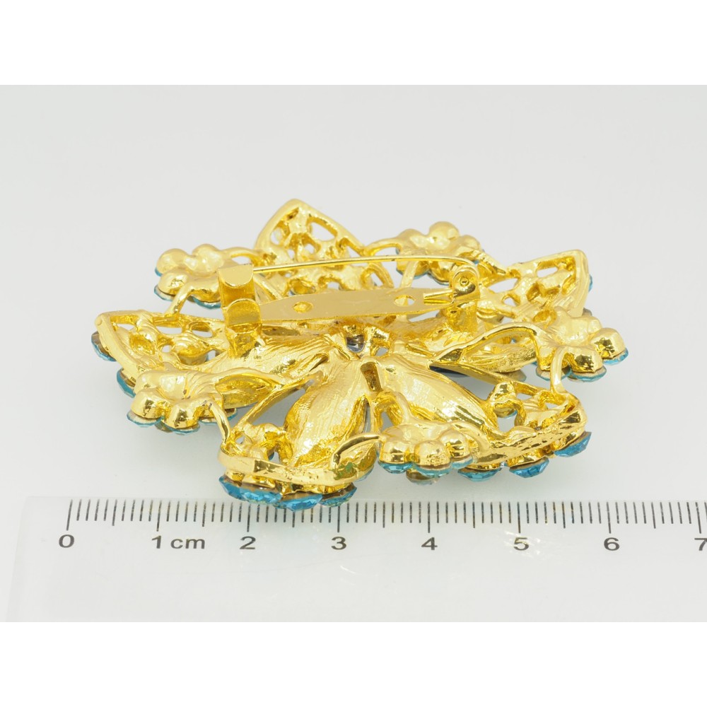Брошь Цветок с бирюзовыми стразами