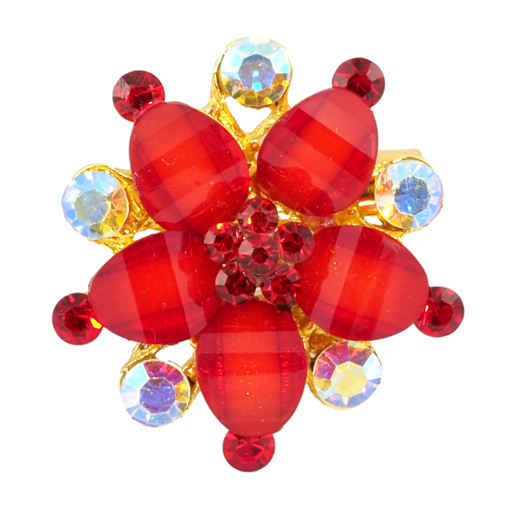 Брошь Цветок с красными стразами