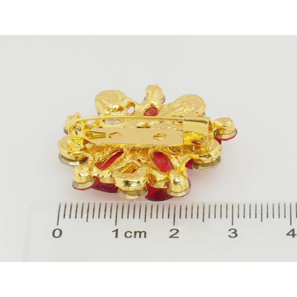 Брошь Цветок с красными стразами фото №2