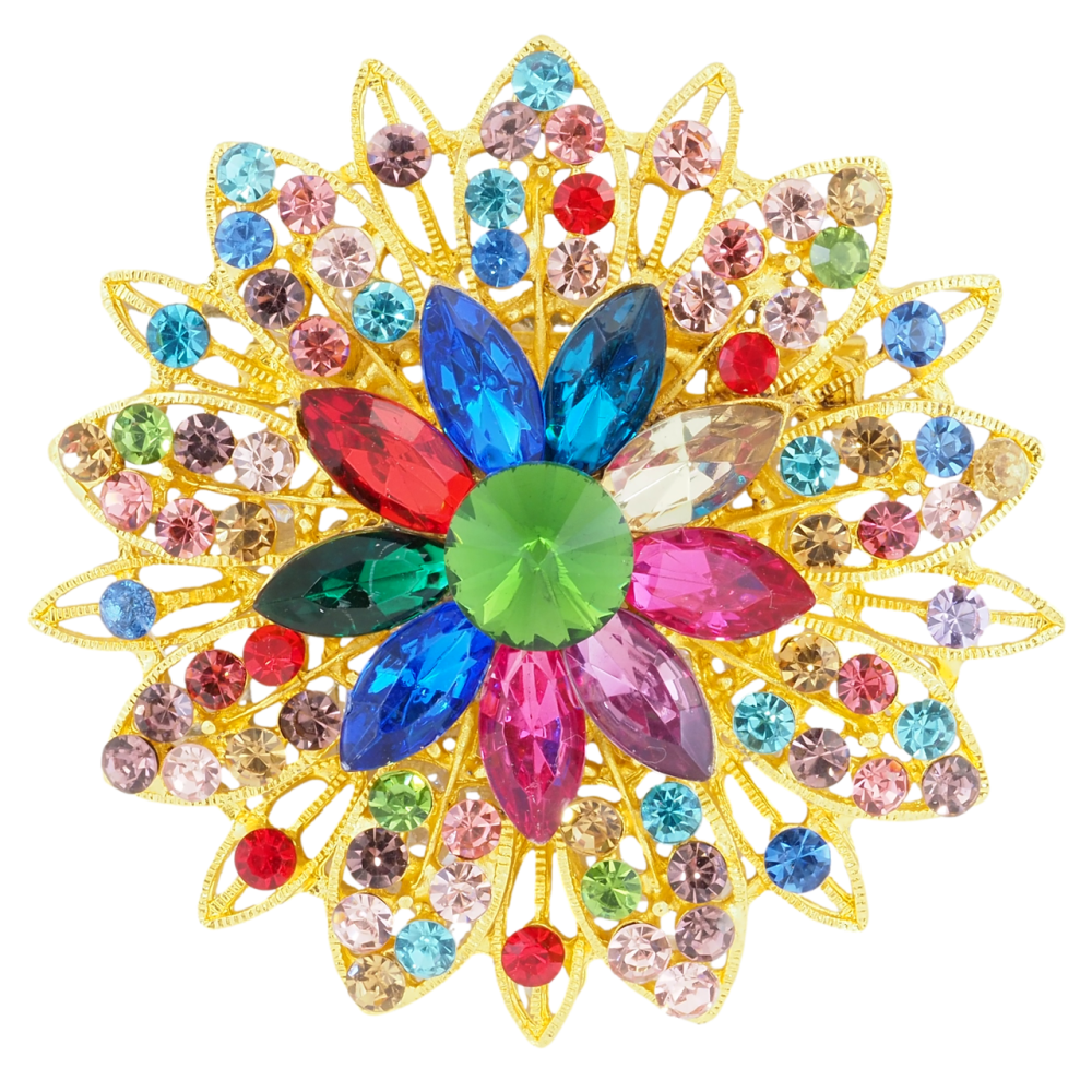 Брошь Цветок с разноцветными стразами