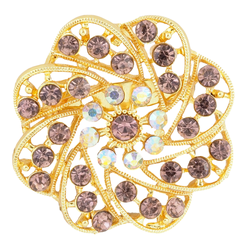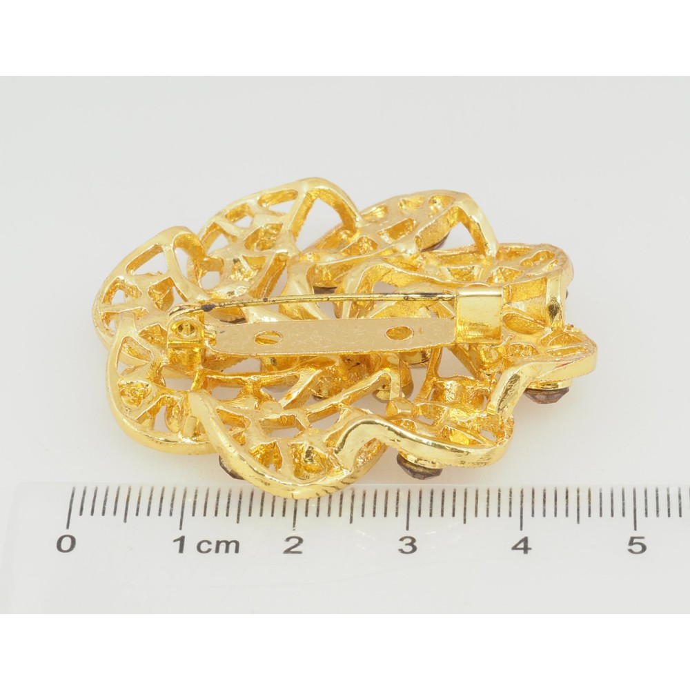 Брошь Цветок с бордовыми стразами