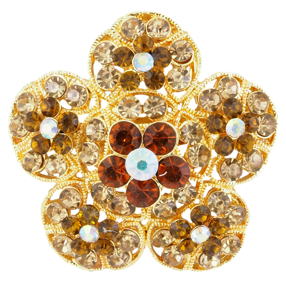 Брошь Цветок с золотистыми стразами фото №1