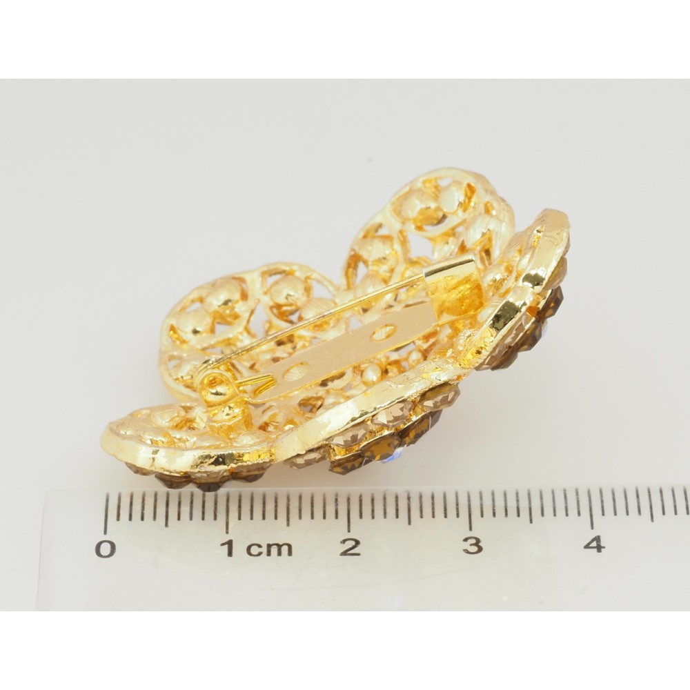 Брошь Цветок с золотистыми стразами