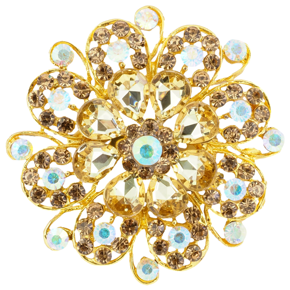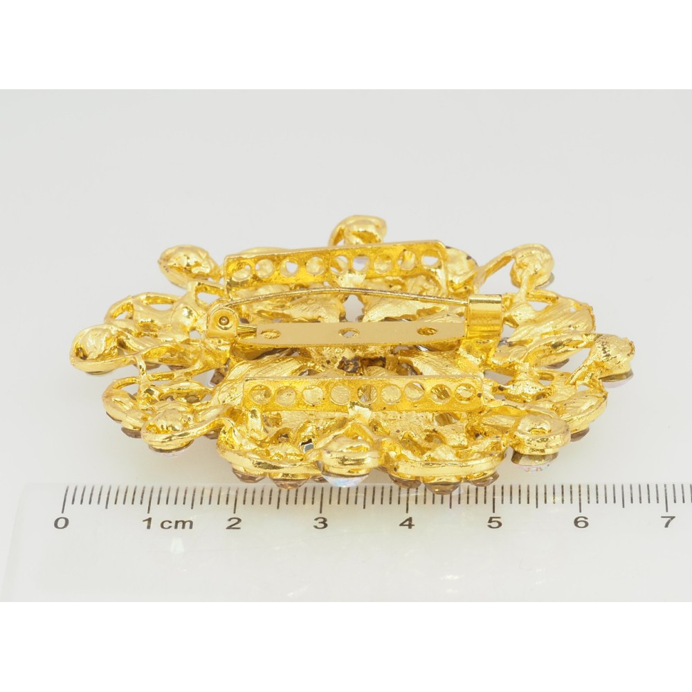 Брошь Цветок с золотистыми стразами