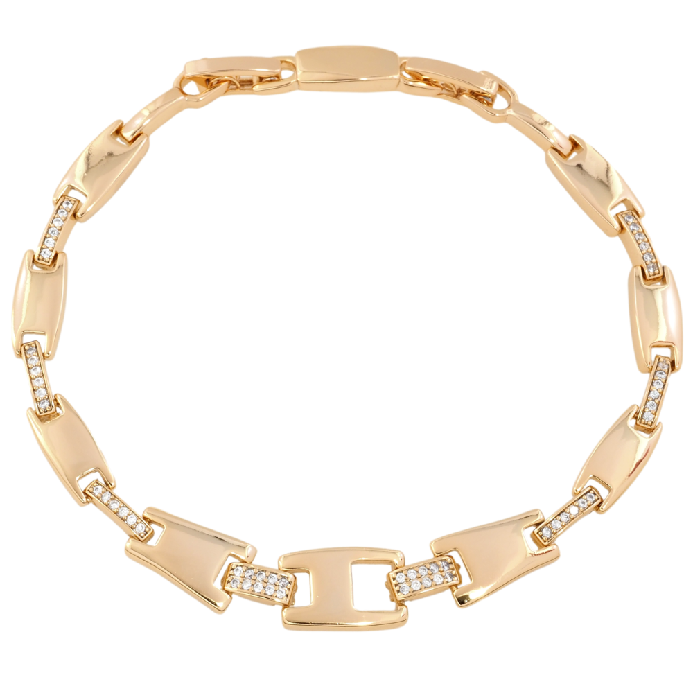 Браслет Xuping Позолота 18K Звенья с цирконием размер с доп. замком 17.5,19.5см х 2-8мм