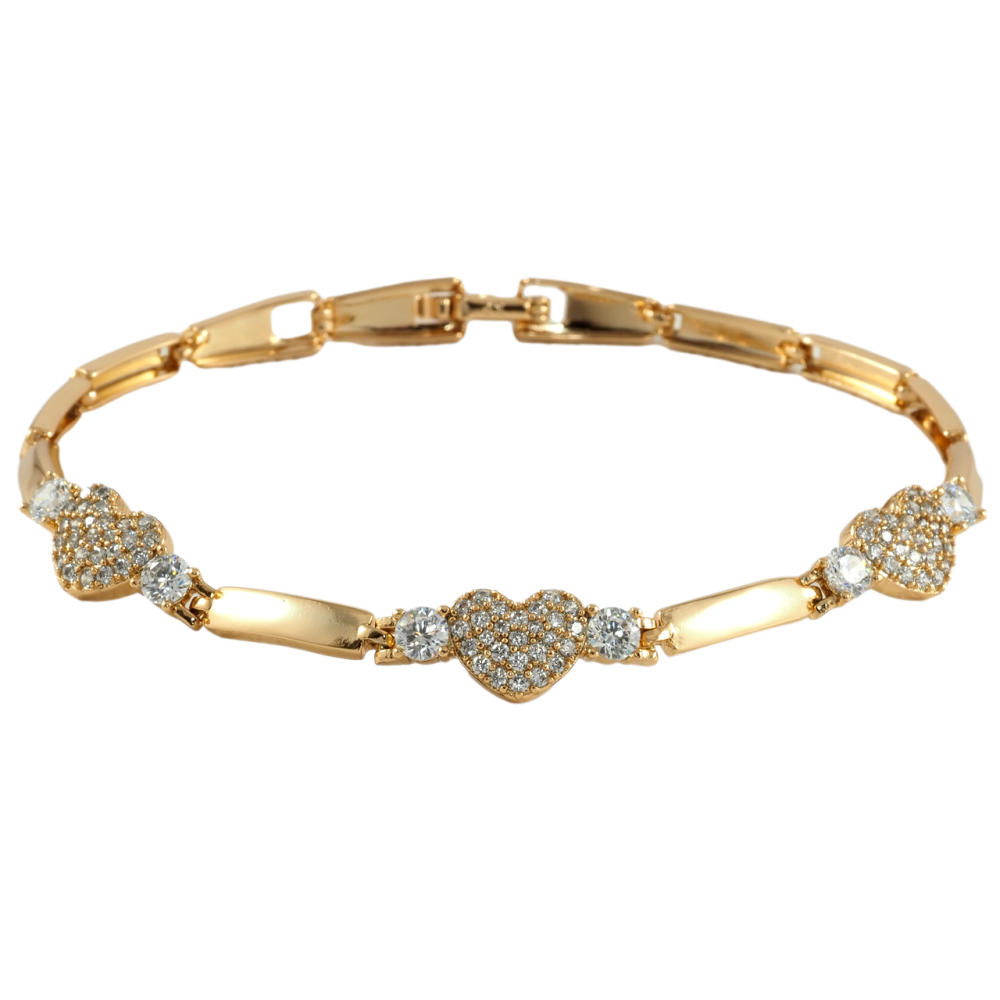 Браслет Xuping Позолота 18K Сердечки с цирконием размер 19.5см х 3мм