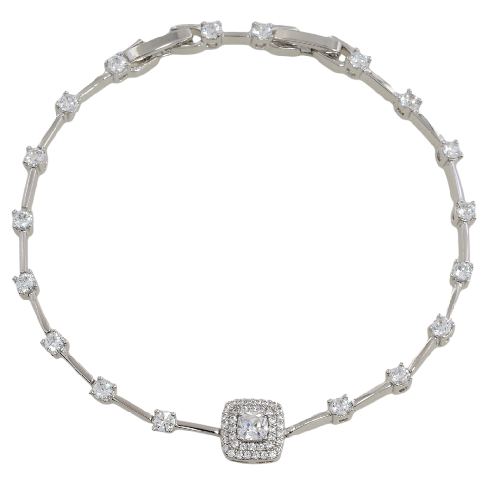 Браслет Xuping Родий Узор с цирконием размер с доп. замком 17.5,19.5см х 1мм